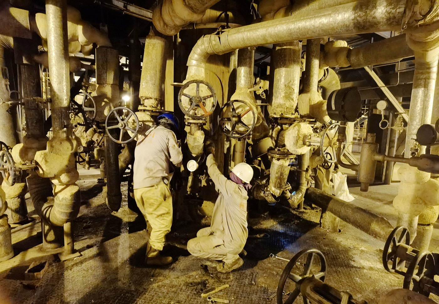 3月初,蘇丹煉油廠RFCC遇故停產,在此危急關頭,蘇丹公司迎難而上,全員積極配合KRC檢修。蘇丹分公司經理錢永軍經常與項目員工一塊搶修在一線,營地經理王西勇不分晝夜,在現場統籌指揮;協調員楊瀟壯、班長張付軍更是不辭辛苦,經常加班到深夜,積極投身到施工現場。更難能可貴的是以Sunil為代表的全體印度員工,任勞任怨,展現了中拓大家庭的團結友愛互助精神。經過將近一個月的晝夜施工,目前RFCC進行保運試生產中。KRC營地全體員工的表現得到了喀土穆煉油廠上至總裁下至各部門負責人的一致贊譽。