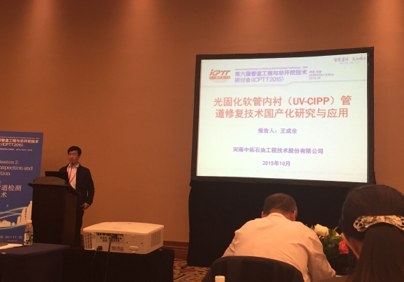 10月22日,我公司總經(jīng)理助理郭循昌和修復(fù)事業(yè)部經(jīng)理王成全赴成都,參加了由住建部科技發(fā)展促進中心、中美聯(lián)合非開挖工程研究中心聯(lián)合舉辦的“第六屆管道工程與非開挖技術(shù)研討會”,重點對中拓的“光固化軟管內(nèi)襯(UV-CIPP)管道修復(fù)技術(shù)”進行了推介。