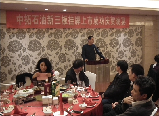 2015-12-14晚18:30分,河南中拓石油工程技術股份有限公司在北京職之家酒店舉辦了新三板掛牌上市成功的慶賀晚宴.