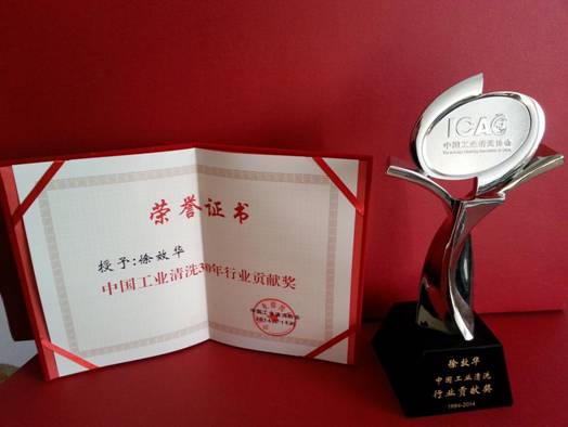 董事長徐效華同志榮獲“中國工業(yè)清洗30年行業(yè)貢獻(xiàn)獎”。