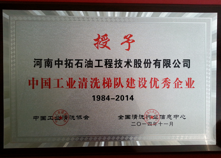 公司獲頒“中國工業(yè)清洗30年梯隊(duì)建設(shè)優(yōu)秀企業(yè)”