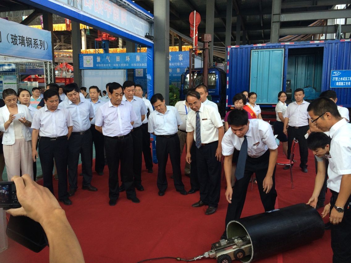9月5日下午濮陽市委書記段喜中一行光臨公司展位,對管道非開挖修復技術十分關注,并觀摩了管道內窺檢測儀的操作過程,對公司的技術、裝備和市場發展前景給予了肯定和鼓勵,并寄予了深厚的希望。