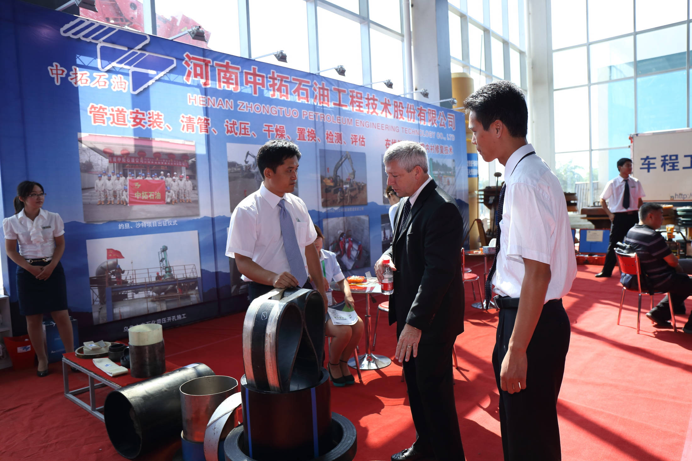 公司領導非常重視、珍惜這次難得的機遇,本次會展公司主要突出管道非開挖修復技術、機具,長輸管道清管試壓、干燥技術及管道檢測技術、儀器。展出的規模是我公司歷年參加展會技術、營銷人員最多,設備展品最多,展位面積最大,利用聲、光、電綜合效果最好的一次。展會期間工作人員精神飽滿,主動向來訪參觀者介紹講解相關技術,同時也主動到其他參展單位學習、交流。期間,濮陽市電視臺對“中拓”也非常關注,進行了采訪和報道。