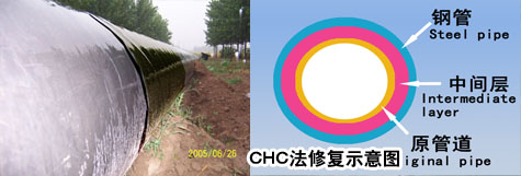 Wrap with metal layer the pipeline that’s been smoothed at the surface, then fill in chemical fillings between the layer and the target pipeline’s external wall, so as to carry out the external solidification rehabilitation.